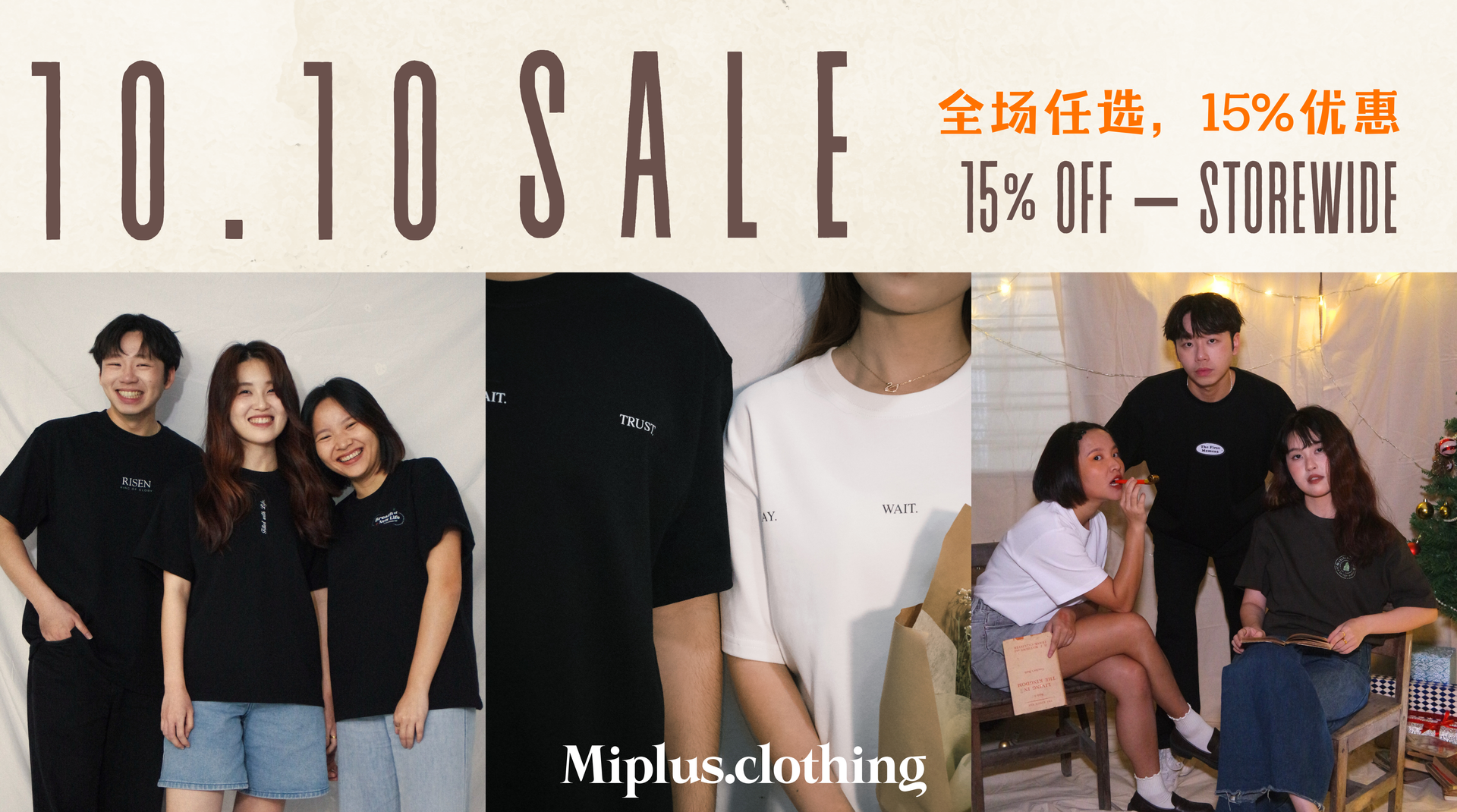On 10 October only, enjoy 15% OFF storewide.– once it’s gone, it’s gone.No codes, no complicated rules – just one day of blessings for you to grab your favorite MiPlus tees.
